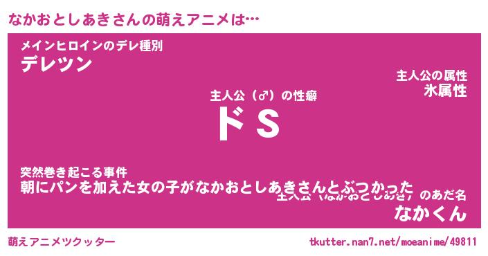 | 男性向けラノベタイトル風あだ名 | 『なかおとしあきの憂鬱』 |