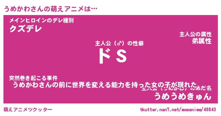 | ヒーロー風カッコイイあだ名 | 『スーパーウメカワ』『炎刃騎士ウメ』 |