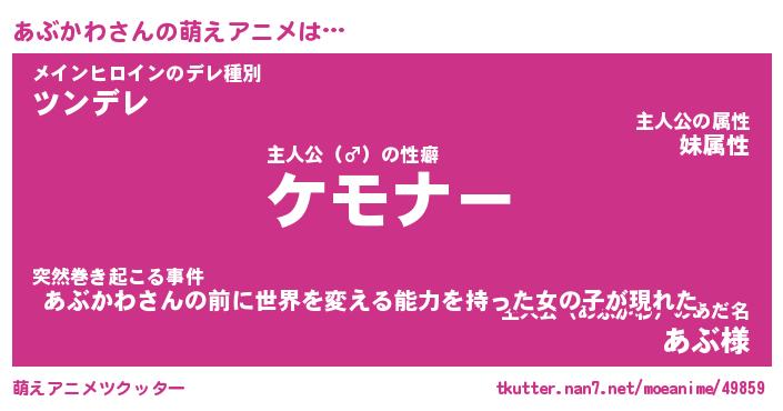 | 女子向けラノベタイトル風あだ名 | 『誰かこのあぶかわを説明してください! ~契約から始まるウェディング~』 |