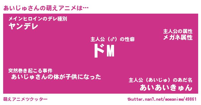 | 男性向けラノベタイトル風あだ名 | 『あいじゅの憂鬱』 |