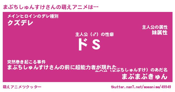 | 男性向けラノベタイトル風あだ名 | 『まぶちしゅんすけの憂鬱』 |