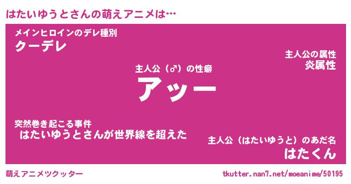 | 男性向けラノベタイトル風あだ名 | 『ハタイユウトアートオンライン』 |