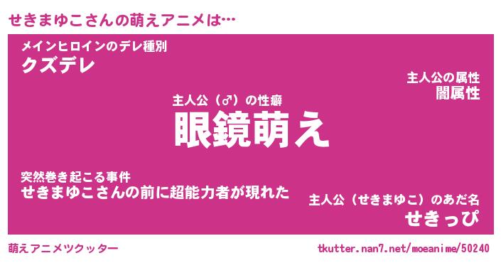 | 男性向けラノベタイトル風あだ名 | 『せきまゆこの憂鬱』 |