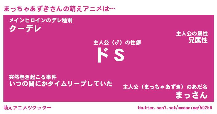 | 女子向けラノベタイトル風あだ名 | 『(仮)まっちゃあずきのやんごとなき事情』 |