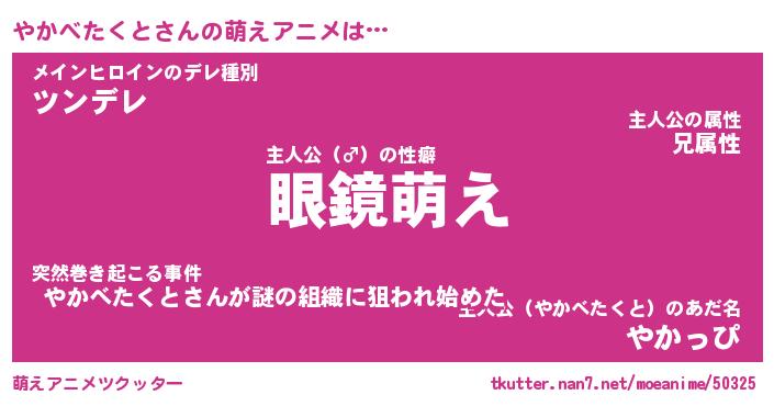 | 男性向けラノベタイトル風あだ名 | 『やかべたくとの憂鬱』 |