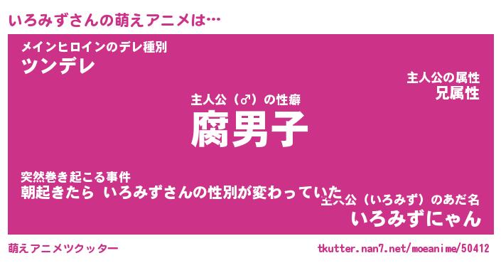 | 男性向けラノベタイトル風あだ名 | 『イロミズアートオンライン』 |