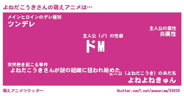 | 男性向けラノベタイトル風あだ名 | 『よねだこうきの憂鬱』 |