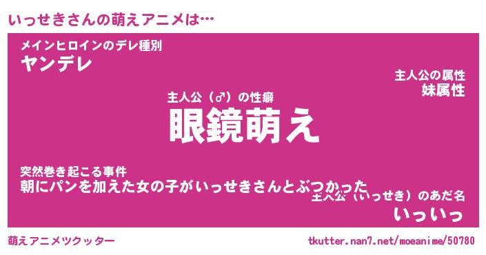 | 男性向けラノベタイトル風あだ名 | 『いっせきの憂鬱』 |
