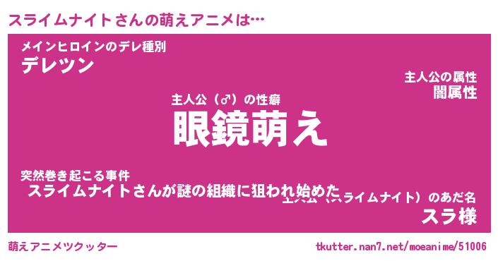 | 男性向けラノベタイトル風あだ名 | 『スライムナイトの憂鬱』 |