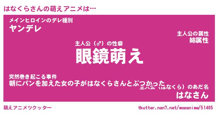 | 男性向けラノベタイトル風あだ名 | 『はなくらの憂鬱』 |