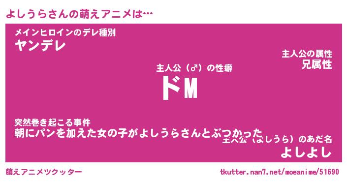 | 女子向けラノベタイトル風あだ名 | 『(仮)よしうらのやんごとなき事情』 |
