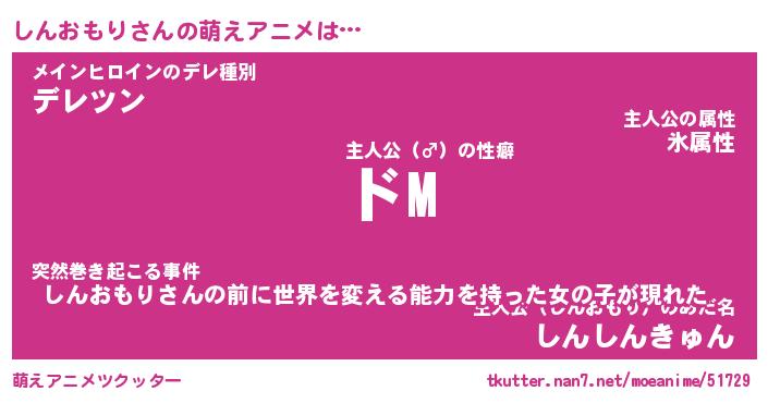 | 男性向けラノベタイトル風あだ名 | 『しんおもりの憂鬱』 |