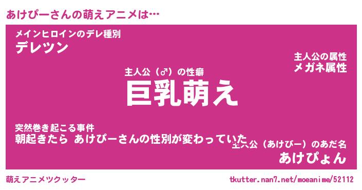 | 男性向けラノベタイトル風あだ名 | 『あけぴーの憂鬱』 |