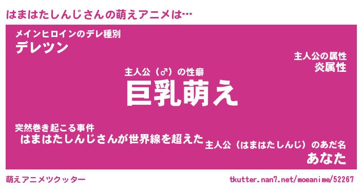 | 男性向けラノベタイトル風あだ名 | 『はまはたしんじの憂鬱』 |