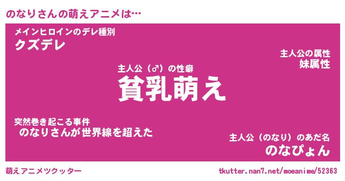 | 男性向けラノベタイトル風あだ名 | 『のなりの憂鬱』 |