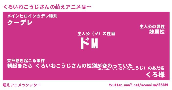 | 女子向けラノベタイトル風あだ名 | 『(仮)くろいわこうじのやんごとなき事情』 |