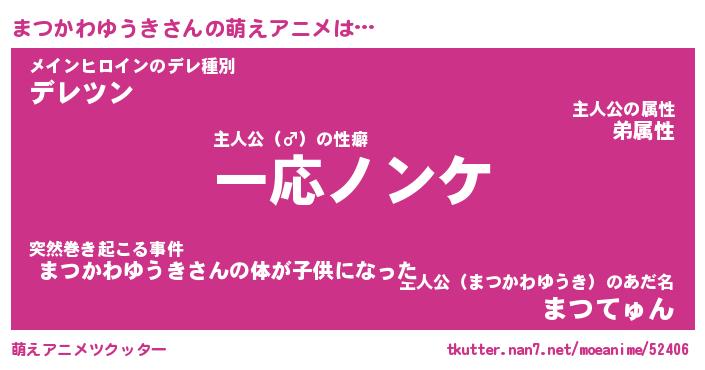 | 女子向けラノベタイトル風あだ名 | 『誰かこのまつかわゆうきを説明してください! ~契約から始まるウェディング~』 |