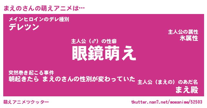 | 男性向けラノベタイトル風あだ名 | 『まえのの憂鬱』 |