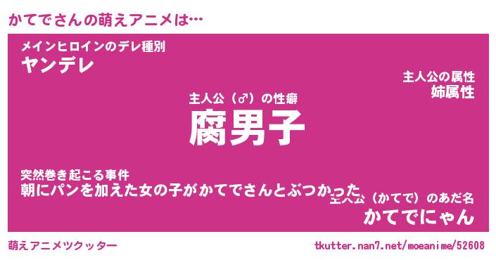 | 2回繰り返すあだ名 | 『かてかて』『かかてて』『あんあん』 |