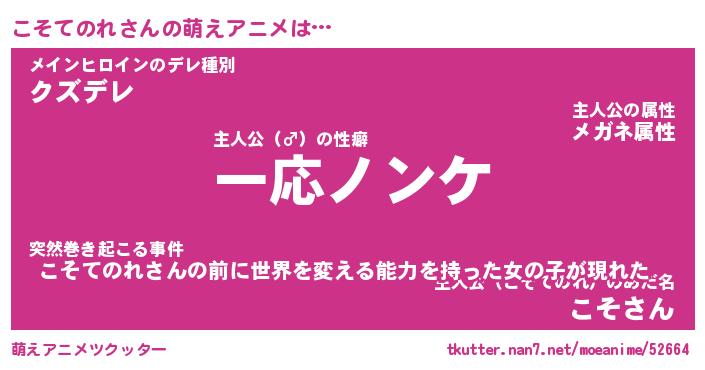 | 男性向けラノベタイトル風あだ名 | 『コソテノレアートオンライン』 |