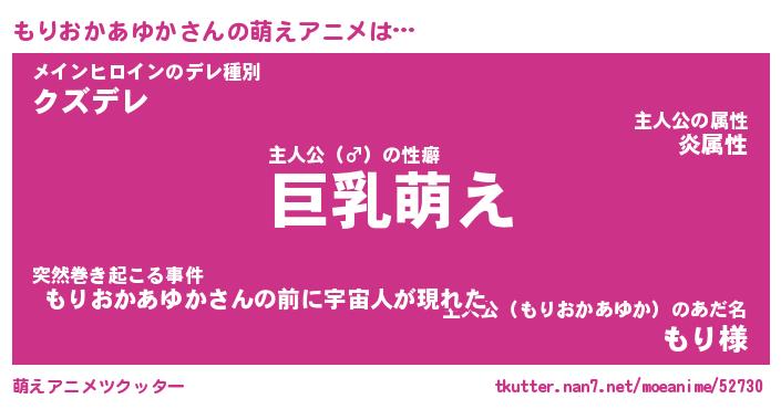 | 男性向けラノベタイトル風あだ名 | 『もりおかあゆかの憂鬱』 |