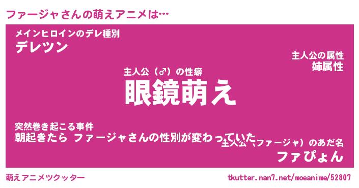 | 男性向けラノベタイトル風あだ名 | 『ファージャの憂鬱』 |