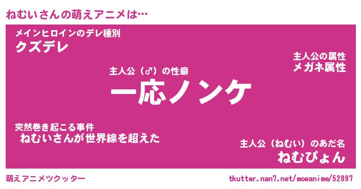 | ヘコむあだ名 | 『ねむにゅー』『酢こんぶ』 |