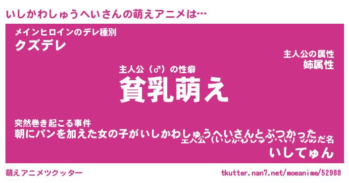 | ヘコむあだ名 | 『いしにー』『牛乳』『いしを』 |