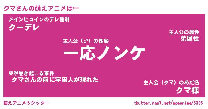 | 男性向けラノベタイトル風あだ名 | 『クマアートオンライン』 |