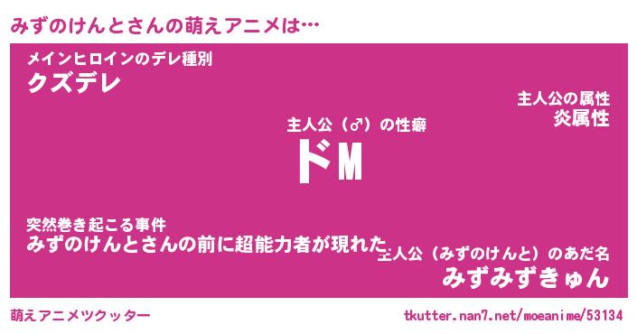 | 男性向けラノベタイトル風あだ名 | 『みずのけんとの憂鬱』 |