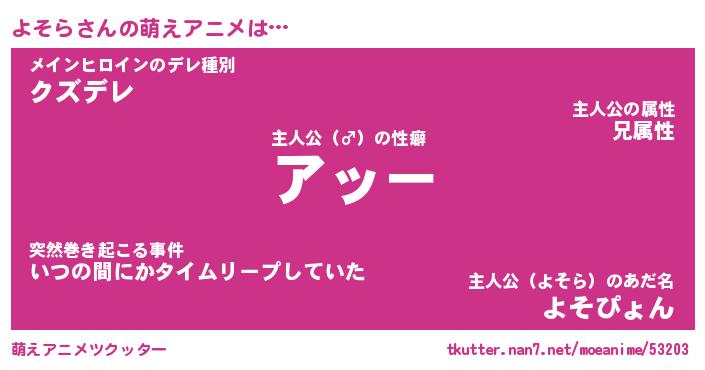 | 伝説のあだ名 | 『封印されしスナイパーよそら』 |