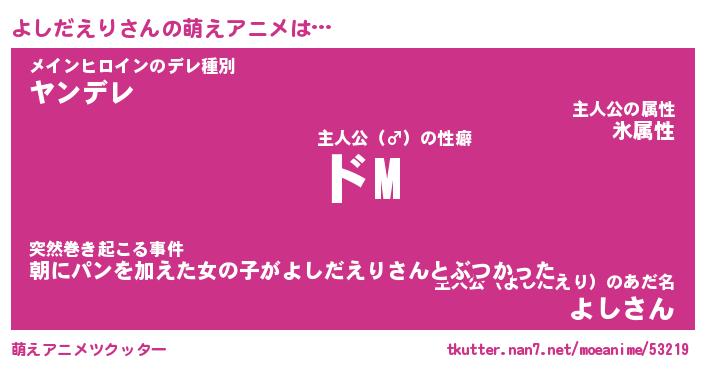 | ファンタジー風あだ名 | 『ヨシフェル』『エターナルヨシダエリー』 |
