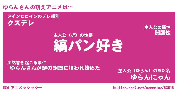 | 男性向けラノベタイトル風あだ名 | 『ゆらんの憂鬱』 |