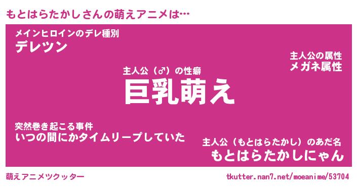 | 男性向けラノベタイトル風あだ名 | 『もとはらたかしの憂鬱』 |