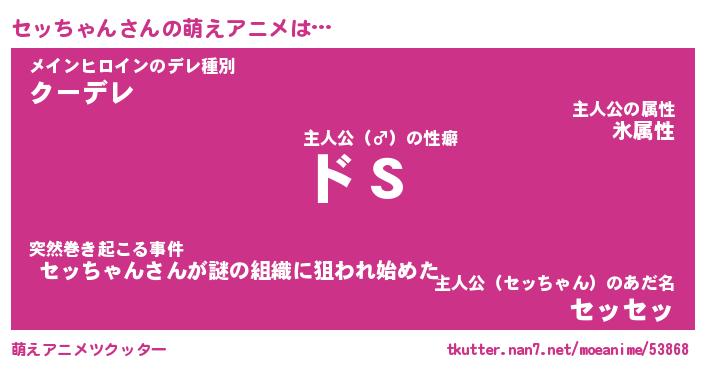 | 男性向けラノベタイトル風あだ名 | 『セッちゃんの憂鬱』 |