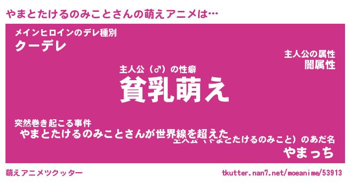 | 男性向けラノベタイトル風あだ名 | 『やまとたけるのみことの憂鬱』 |