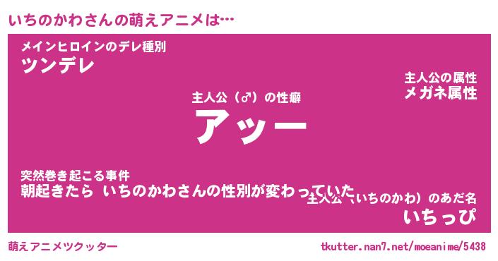 | 男性向けラノベタイトル風あだ名 | 『イチノカワアートオンライン』 |