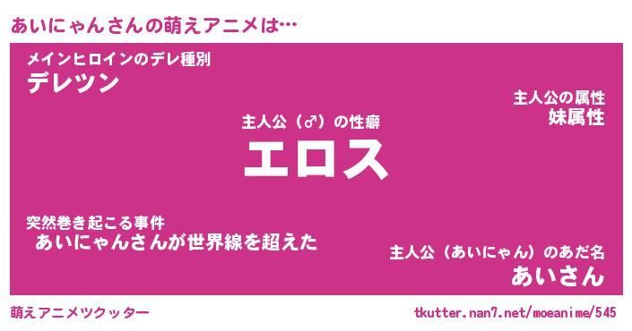 | 男性向けラノベタイトル風あだ名 | 『アイニャンアートオンライン』 |