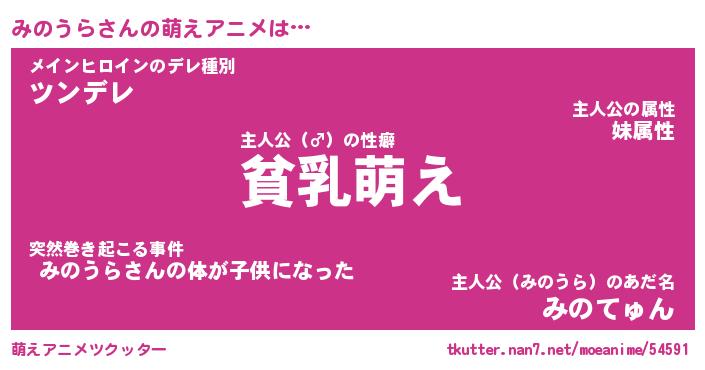 | 男性向けラノベタイトル風あだ名 | 『みのうらの憂鬱』 |