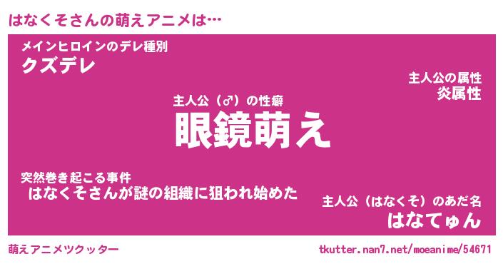 | 男性向けラノベタイトル風あだ名 | 『はなくその憂鬱』 |