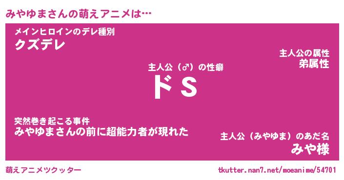 | 男性向けラノベタイトル風あだ名 | 『みやゆまの憂鬱』 |
