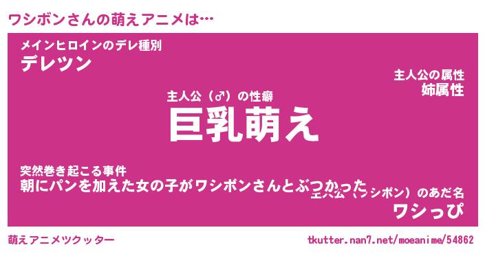 | 男性向けラノベタイトル風あだ名 | 『ワシボンの憂鬱』 |