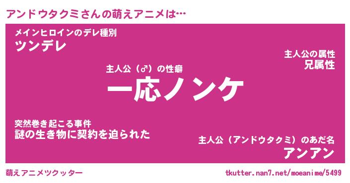| ツイッター | アンドウタクミさんのツイッターID『namakemono_nyan』 |
