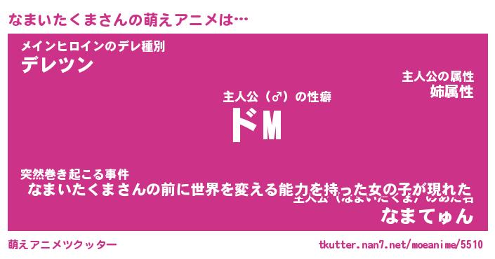 | 男性向けラノベタイトル風あだ名 | 『なまいたくまの憂鬱』 |