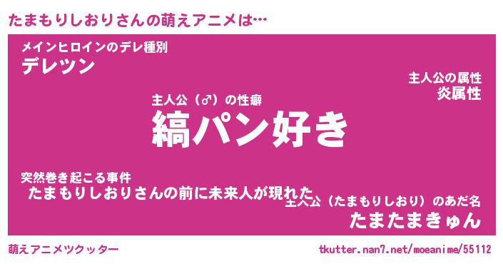 | 女子向けラノベタイトル風あだ名 | 『(仮)たまもりしおりのやんごとなき事情』 |