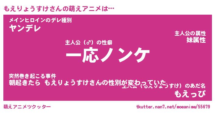 | 女子向けラノベタイトル風あだ名 | 『誰かこのもえりょうすけを説明してください! ~契約から始まるウェディング~』 |