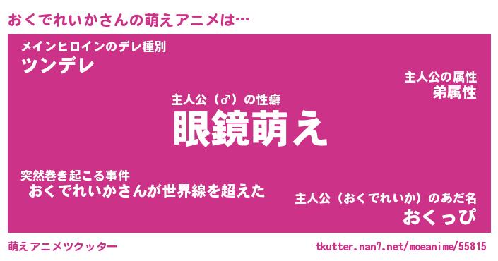 | 男性向けラノベタイトル風あだ名 | 『おくでれいかの憂鬱』 |