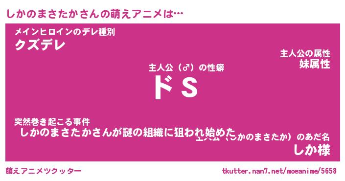 | ヘコむあだ名 | 『しかにー』『酢こんぶ』『しかっ子』 |
