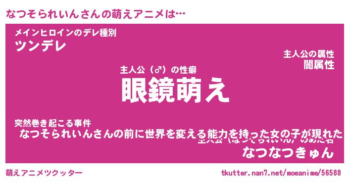 | 男性向けラノベタイトル風あだ名 | 『なつそられいんの憂鬱』 |