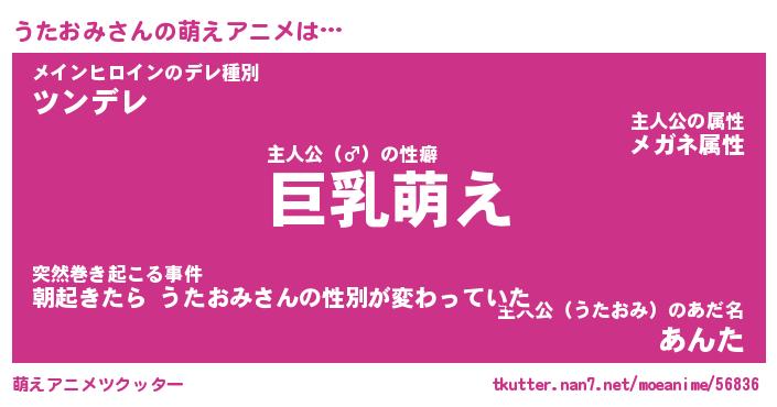 | 男性向けラノベタイトル風あだ名 | 『うたおみの憂鬱』 |